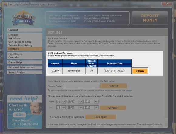 - Klicken Sie auf den Kasse Knopf und dann klicken Sie auf Bonus links im Menü im Mitglieder Bereich